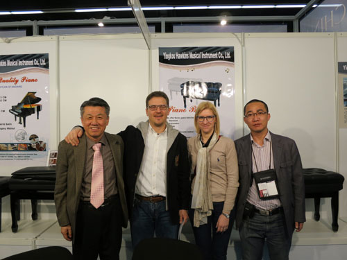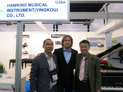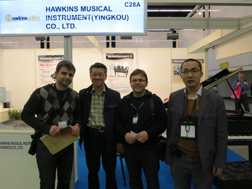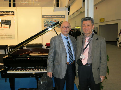 在2014法兰克福乐器展上韩国丽致钢琴总裁李权在先生与新老客户以及国外乐器界朋友在一起在2014年法兰克福乐器展会上众多钢琴爱好者演奏了丽致钢琴并给予了很高的评价在2014年法兰克福展会上荷兰著名钢琴家弗朗斯C.舒尔茨(Frans C.Schulze)多次来到丽致钢琴展位并演奏丽致钢琴